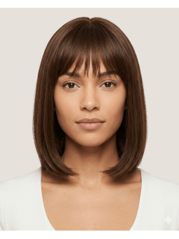 Cette perruque carré châtain avec frange est pensée pour celles qui veulent une coiffure nette, féminine et vraiment facile à vivre. Sa coupe courte de 12 pouces apporte un rendu soigné sans demander de mise en place compliquée, ce qui en fait une très bonne option pour le quotidien, le travail ou les sorties de dernière minute.